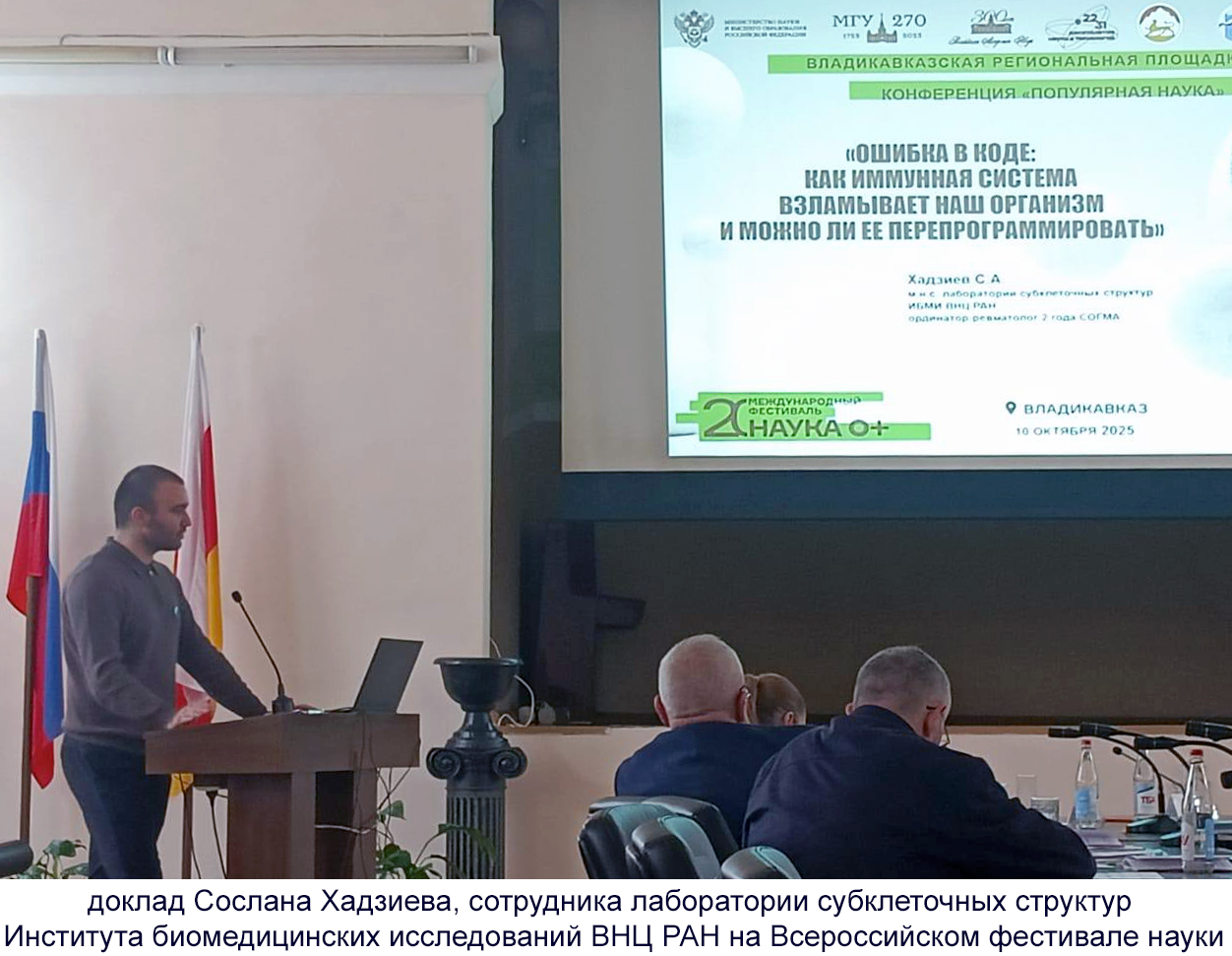 Впечатляющим стал доклад Сослана Хадзиева, сотрудника лаборатории субклеточных структур Института биомедицинских исследований ВНЦ РАН, который рассказал о современных методах перепрограммирования иммунной системы с помощью генно-инженерных препаратов.