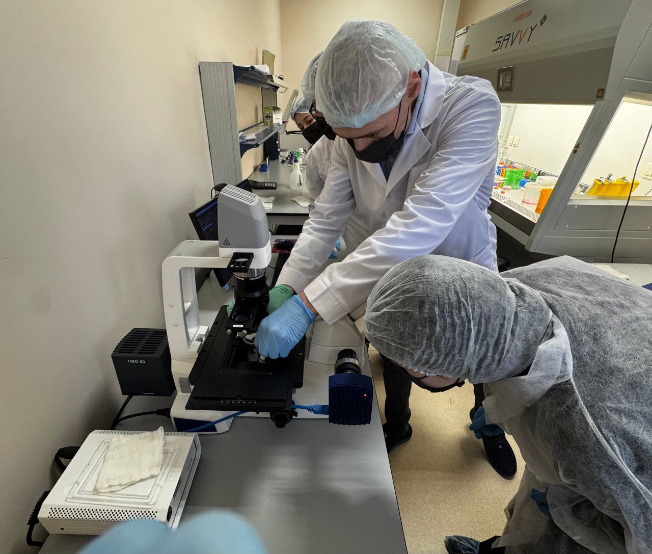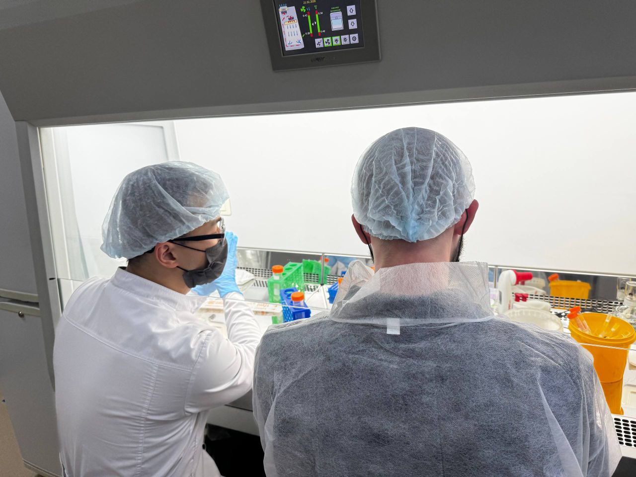Перед началом практики специалисты лаборатории провели подробный инструктаж по технике безопасности — работа с клеточными культурами требует стерильности и внимательности. После подготовки студенты погрузились в настоящий научный процесс. Участники увидели культуры живых клеток с помощью инвертированного микроскопа, изучая их строение и состояние. Затем они освоили навыки смены питательной среды и  пересева клеток (субкультивирования). Это ключевой этап для поддержания жизни клеточной линии, которая в дальнейшем используется для тестирования лекарств или изучения механизмов болезней.