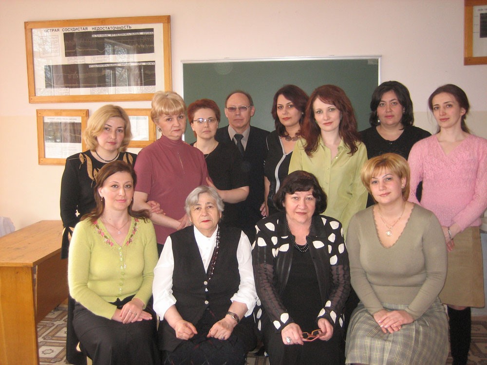 слева-направо – 1 ряд: к.м.н. М.Г. Черткоева, к.м.н. С.Г. Пашаян, д.м.н. директор ИБМИ Л.Г. Хетагурова, к.м.н. В.А. Гадиева;