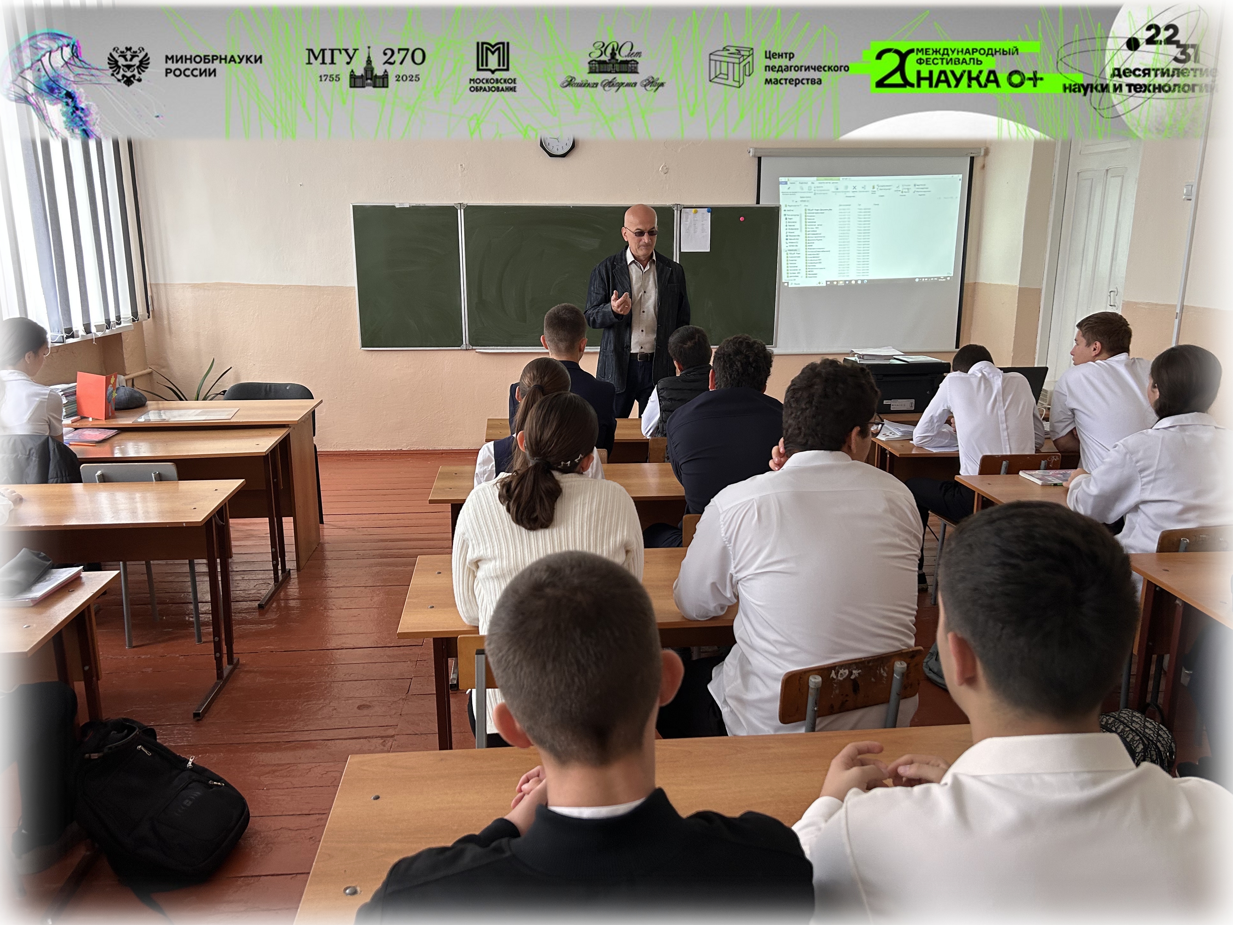 Алибек Кирилович прочитал лекцию школьникам 10-11 классов средней школы №2 селения Чермен. В краткой, доступной и занимательной форме ознакомил школьников с современными решениями проблем экологии, энергетики, передачи информации и рационального использования ресурсов окружающей среды.