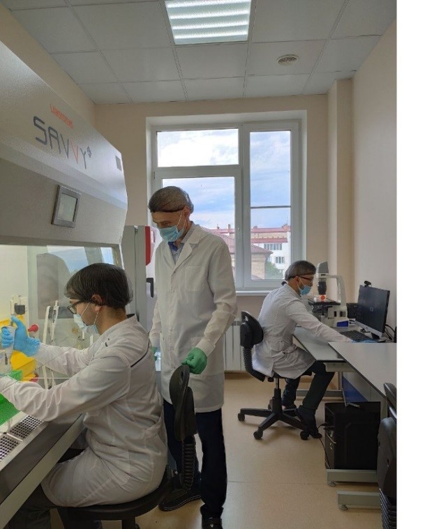 Достижения:  Сегодня в лаборатории ведется работа по получению первичных культур стволовых клеток (мезенхимальных стволовых, фибробластов и др.) и созданию «полезных» клеточных линий из биологических материалов животных (костного мозга, подкожной жировой клетчатки, кожи и др.) и человека (пуповинная кровь, костный мозг и др.), их последующая криоконсервация, с целью формирования собственного банка стволовых и прогениторных клеток;